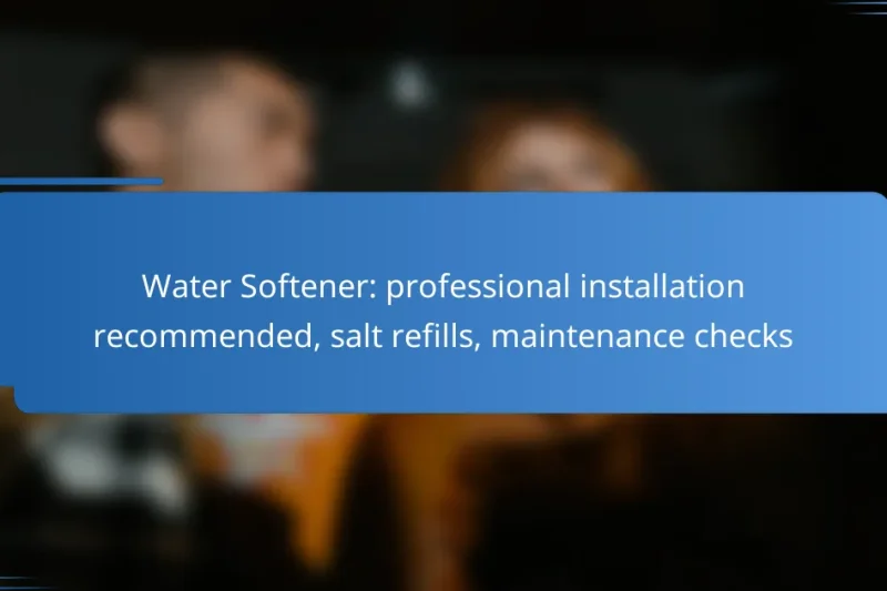 Water Softener: professional installation recommended, salt refills, maintenance checks