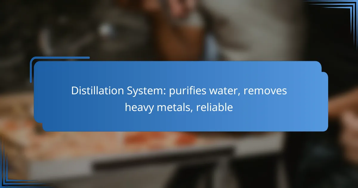 A distillation system purifies water by heating it to create steam and then cooling the steam back into liquid form, effectively separating impurities. This process removes contaminants, including heavy metals, making the water safe for consumption.