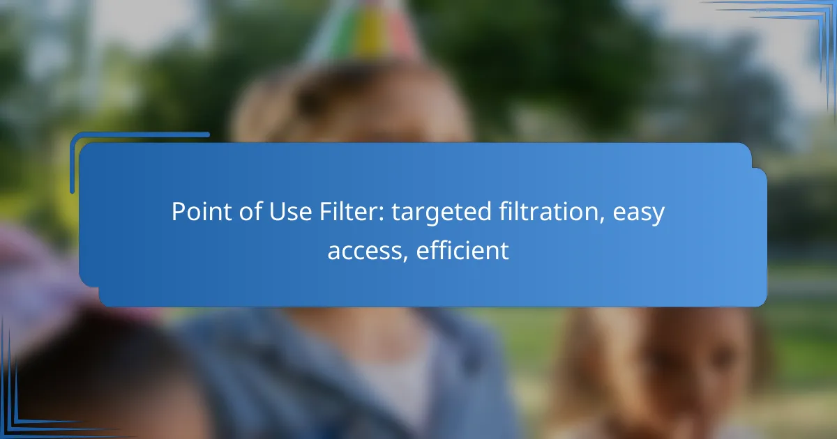 Point of Use Filters require regular maintenance to ensure optimal performance and water quality. Key aspects include timely filter replacements and routine inspections to avoid clogging and contamination.