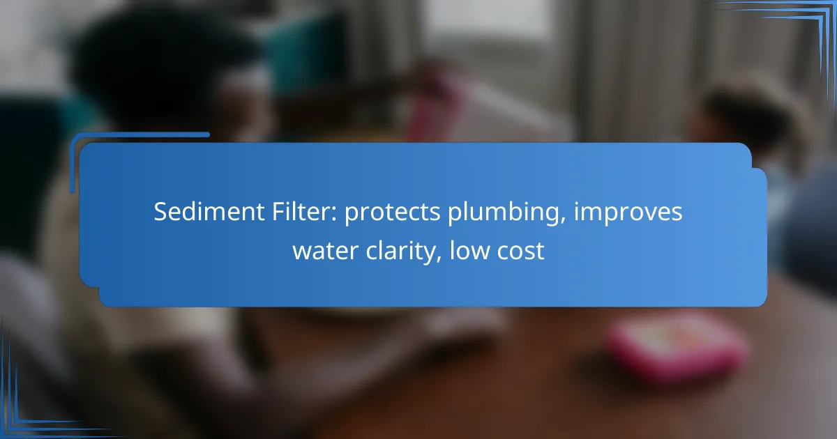 A sediment filter is an essential component for maintaining plumbing systems by effectively removing particles and debris from water before it enters the pipes. This not only enhances water clarity but also contributes to better health outcomes by reducing contaminants. With their low to moderate cost, sediment filters are an affordable solution for homeowners looking to protect their plumbing and improve the quality of their water supply.