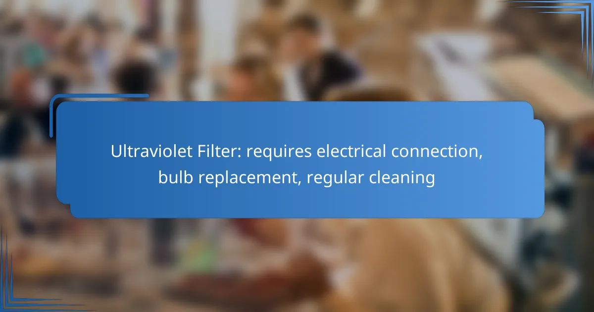 Ultraviolet filters require regular maintenance to ensure optimal performance, including electrical connections, bulb replacements, and frequent cleaning. Neglecting these tasks can lead to reduced efficiency and potential system failures.